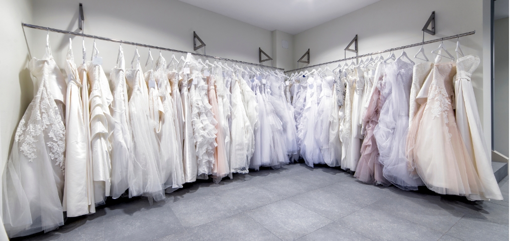 特徴的な外観を持つ「みやこや足利店・M.Story」。広大な敷地に広い駐車場を持つ店舗です。クラシカルな王道スタイルから、個性が光るモダンなデザインまで。知識豊富な専門スタッフが、お二人の魅力を最大限に引き出す「運命の一着」との出会いをサポートします。